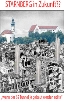Mit der West-Umfahrung und Nordost-Umfahrung hätten wir fast eine geschlossene Umfahrung. Ein B2-Innenstadttunnel würde die Stadt zerstören und die Verkehrsprobleme verschärfen. Er würde nur zusätzlichen Verkehr von über 10.000 Kfz/24 Stunden in die Stadt holen, infolge der sog. Sogwirkung! Warum Mobilisten, die Starnberg heute (ohne B2-Tunnel) gerne weiträumig umfahren, in die Stadt holen?